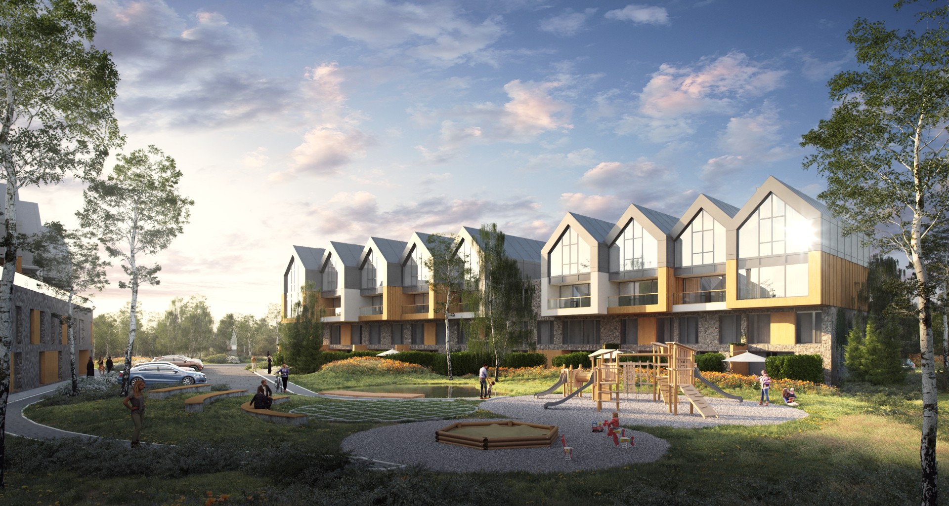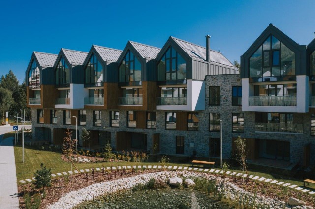 38 apartmánov, 7 chaletov, sadové úpravy, ihriská